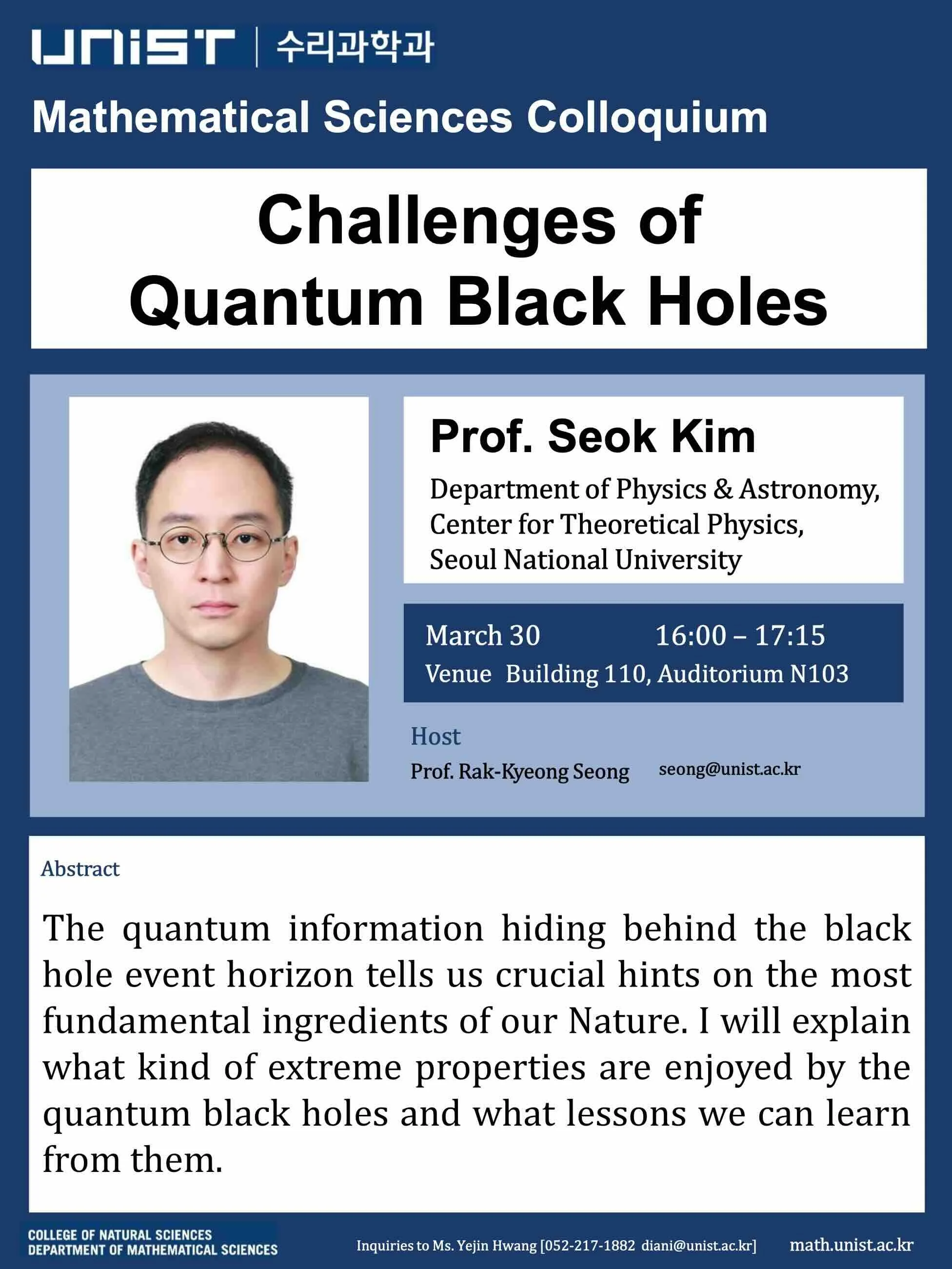 Colloquium: Professor Seok Kim (SNU, Korea)